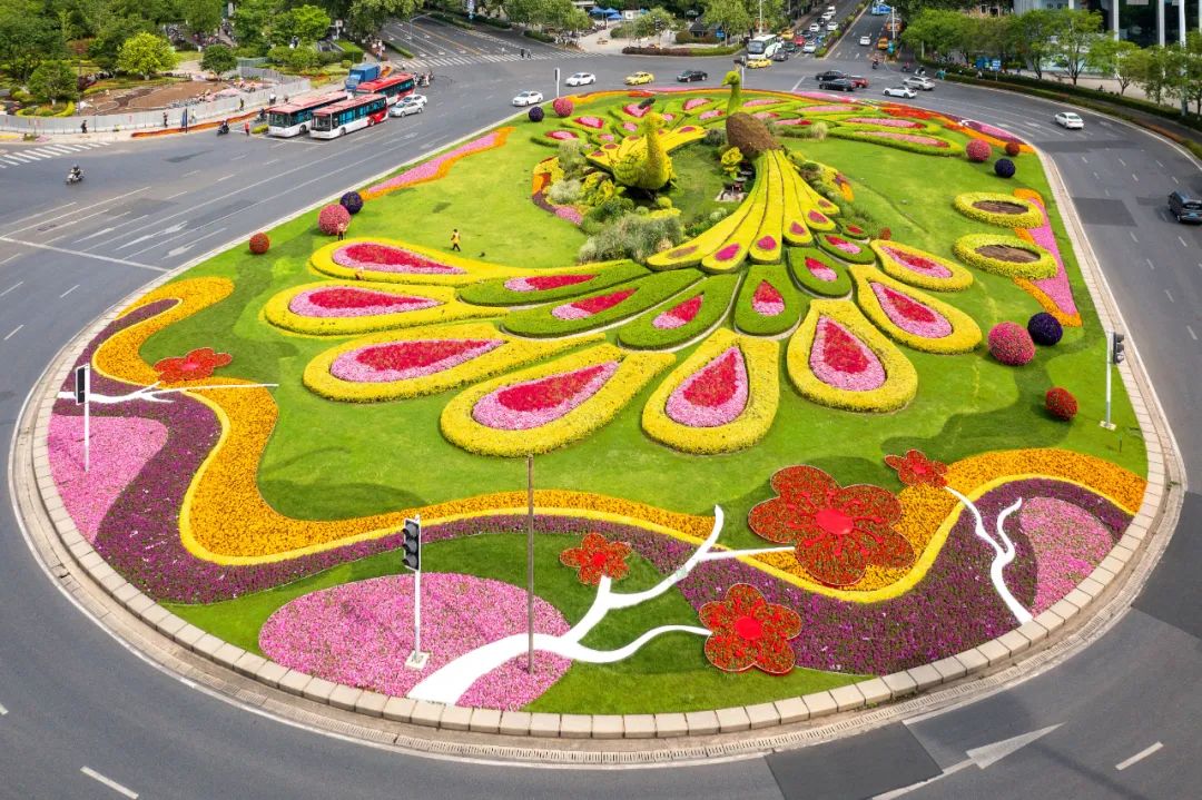 和平公園東園“幸福之門”、西園“飛躍之門”、九華山南坡松鼠等綠雕花境布置,花姿招展、層次錯落的空間感和情景變化,步移景異、栩栩如生。
