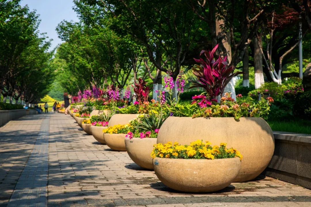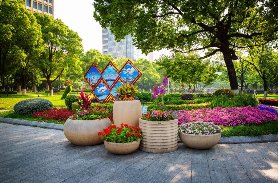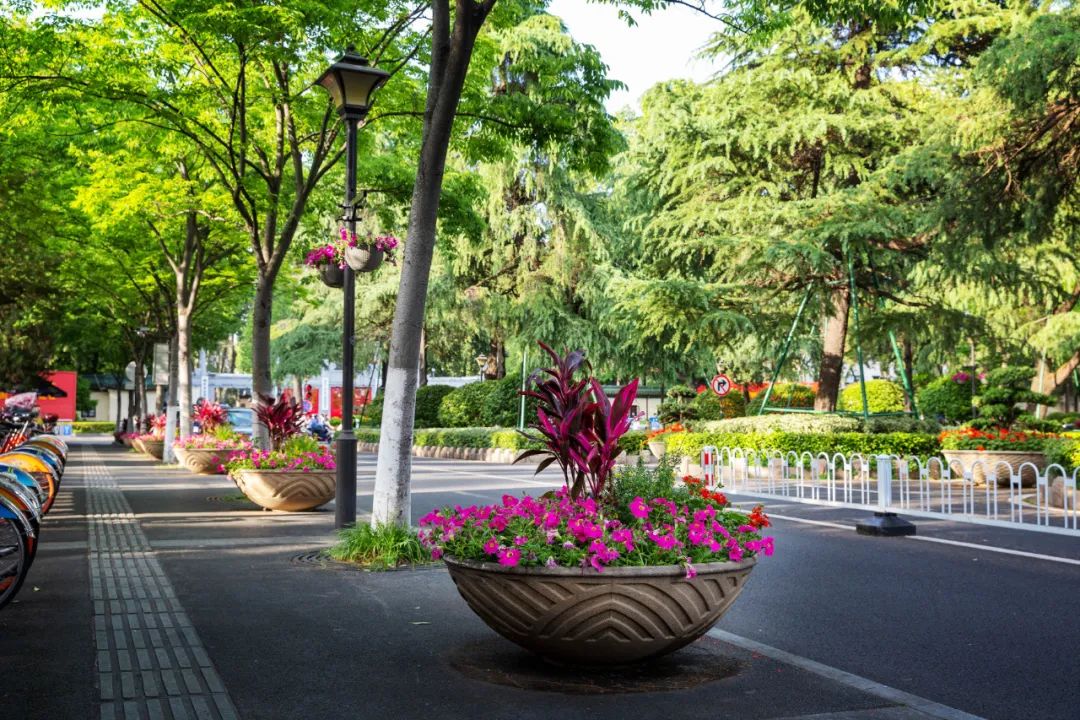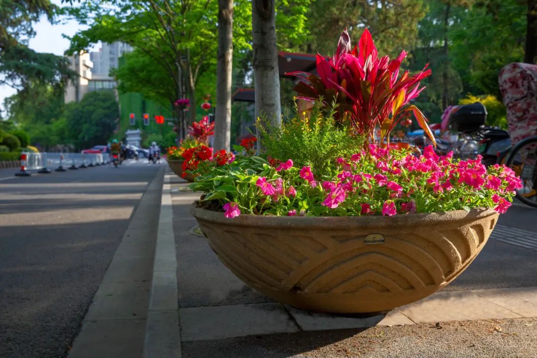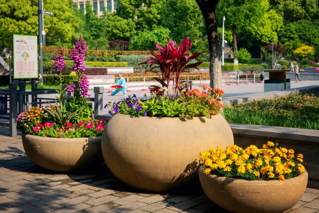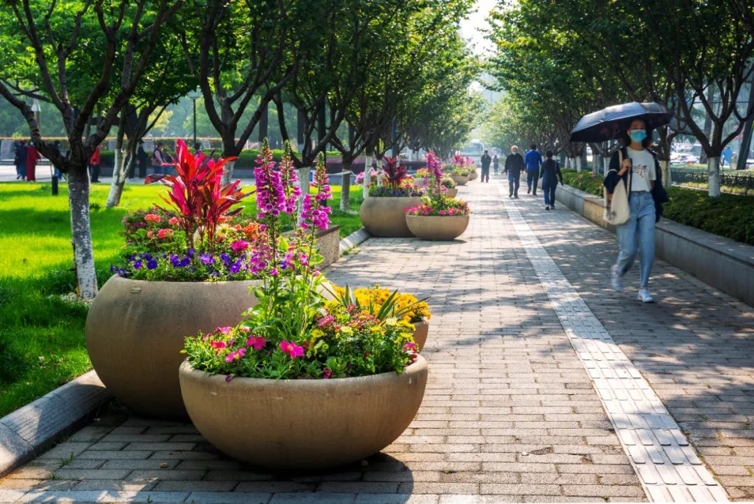 鼓樓市民廣場花境、組合花碗、花傘等繼續以色彩豐富、花卉進行布置,裝扮生機盎然、環境宜人的城市客廳。