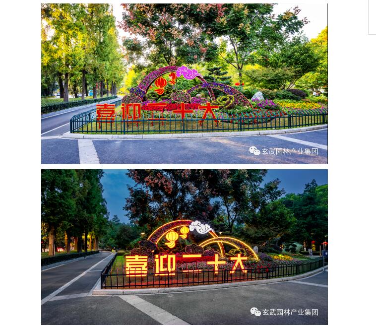 為迎接國慶和黨的二十大勝利召開,在南京市綠化園林局、玄武區建設局、區綜管所統一部署下,玄武園林公司在常態化花卉景觀布置的基礎上,積極開展“共慶國慶節、喜迎二十大”園林綠化環境布置工作,營造濃厚熱烈的慶祝氛圍。