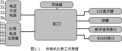 本儀表系列采用了高精度的采樣計量,高速的MCU進(jìn)行數(shù)據(jù)處理,豐富的液晶顯示屏,非易失存儲器。具體結(jié)構(gòu)如圖2.1所示。