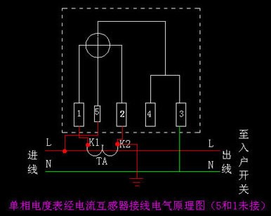 (1)單相電度表內(nèi)5和1端未斷開時(shí)的接法。