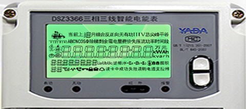 廣東雅達(dá)DSZ3366三相三線智能電能表, 主要功能總、有無(wú)功,分時(shí)分相電能計(jì)量,電壓電流功率因素、相角、相位等數(shù)據(jù)測(cè)量功能,防竊電功能及485通訊功能。以下簡(jiǎn)單介紹這款多功能電能表液晶屏上出現(xiàn)的符號(hào)代碼代表什么含義?