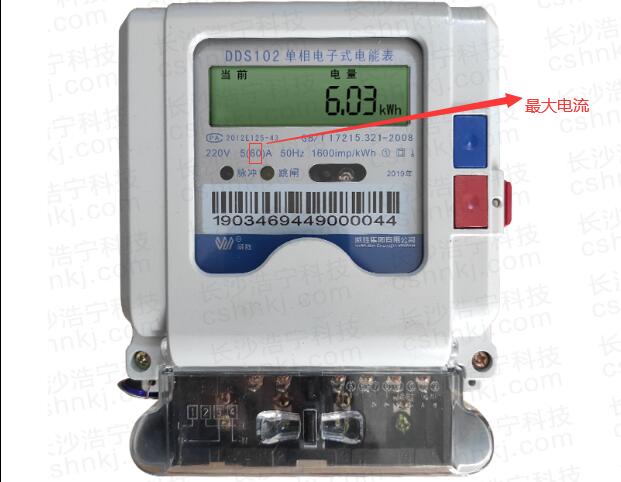 額定最大電流:能夠滿足電表準確的最大電流,計算電路中允許接入用電器的最大總功率,超過后計量就不準確了。所以單相電表最大多少安一定要看額定最大電流,最大電流一般在電表上面就會有顯示,電流顯示一般是5(60)A,如下圖所示,最大電流就是括號里面的60A。